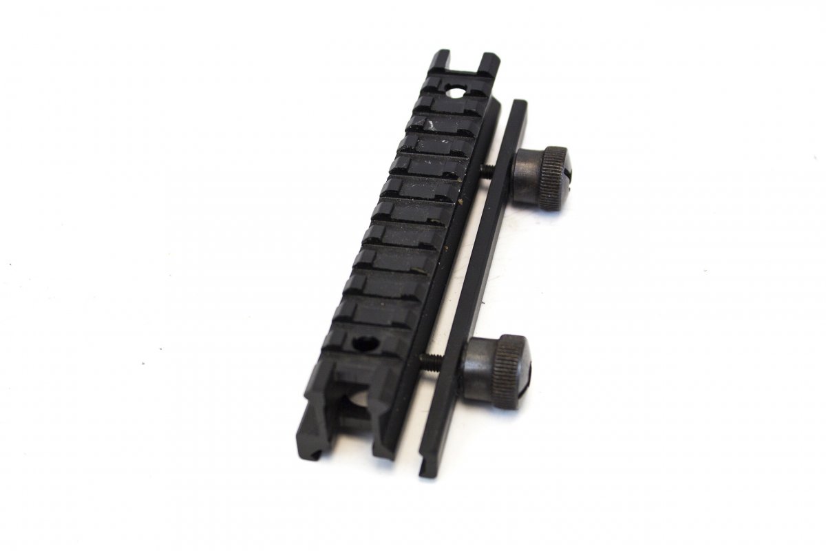 Scope riser block to make a scope sit higher. Often used when a users face/eye protection stops them getting close enough to the rifle to look down the sights normally.