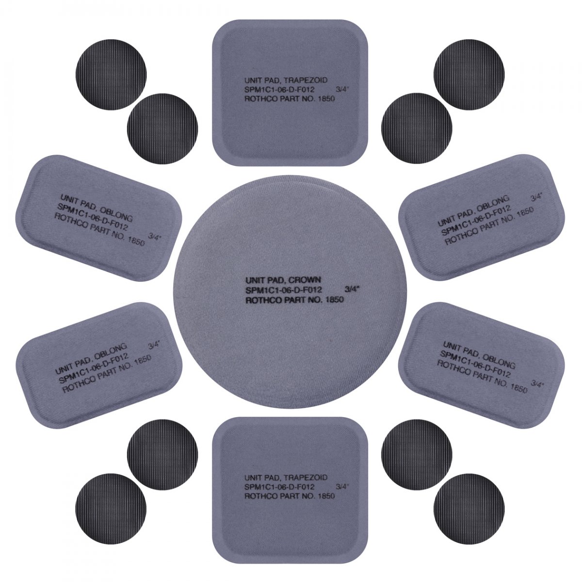 Variety of Pad Shapes: Set includes 4 oblong pads (3.5 inch x 2 inch), 2 trapezoid pads (3.25 inch x 3.5 inch & 3 inch x 3.5 inch), and 1 crown pad (5 inch diameter) for a customized fit.