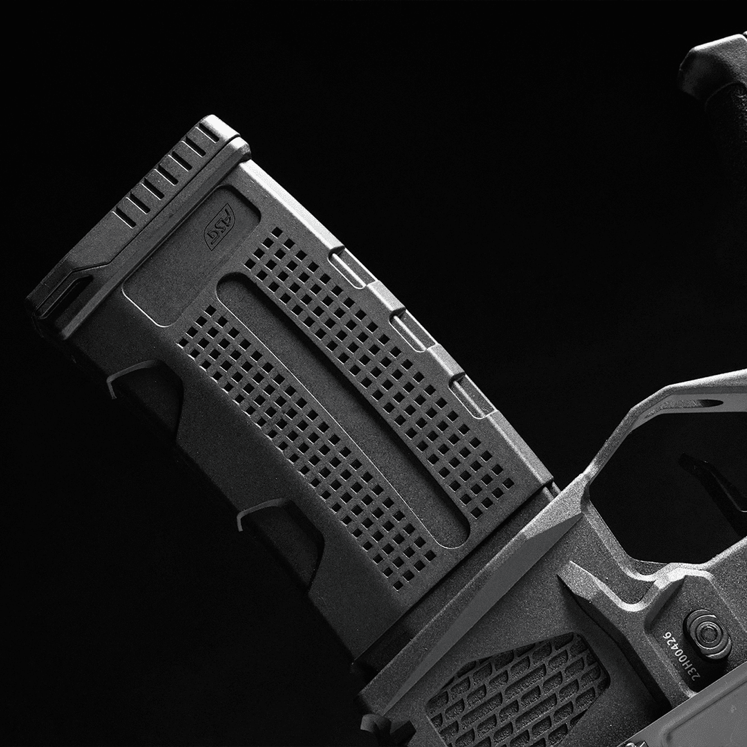 This rifle combines metal and polymer components the same way a real assault rifle does. The collapsible buttstock, magazine and pistol-grip of this rifle are crafted from high-strength polymer while all other components, from its chassis to its barrel, trigger and rail are comprised of durable metal. Taking a closer look at these components, it features an array of high-end pieces including a HERA ARMS CCS buttstock, PTS EPG-C pistol grip and a Retro Arms trigger. Additionally, this exceptional rifle features our own ASG custom M-Rail handguard allowing the user to attach accessories to make it their own. Also included in the box is a midcap magazine with a capacity of 180 rounds.