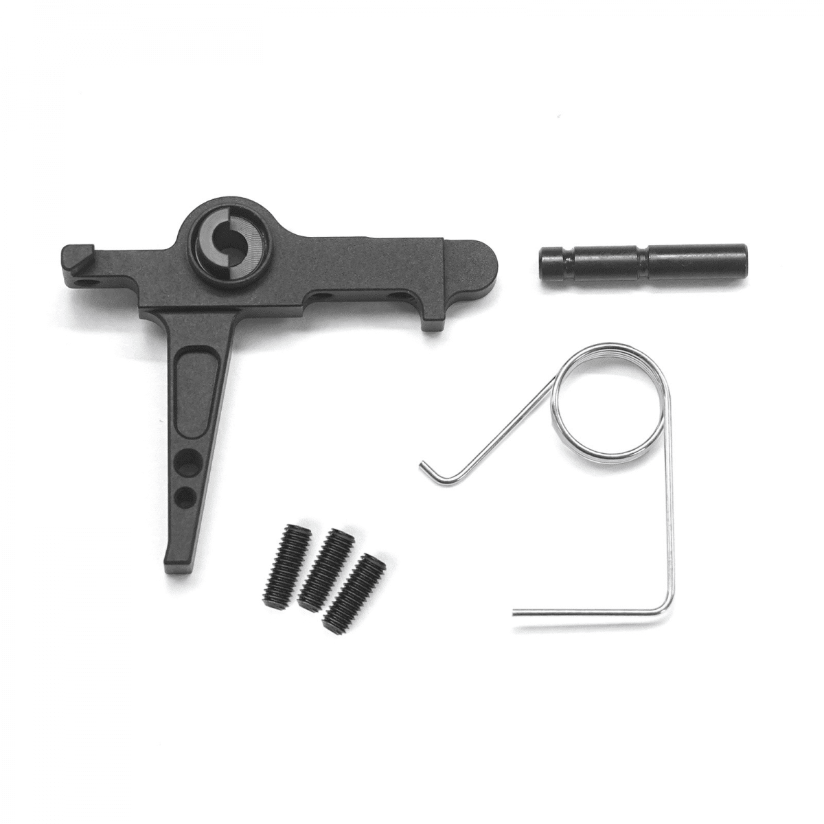 The Heretic labs speed trigger offers next level feel and adjustability for any MTW-Spec platform. The innovative design includes full CNC aluminum construction on the trigger, with an integrated Delrin solid bearing design paired with a 50% lighter spring resulting in incredibly smooth action. In addition, the novel integral retaining clip allows easier installation while dramatically reducing friction. The result is a short, smooth pull with a crisp tactile fee. For advanced users we have included support for optional 3-way travel adjustment to allow tuning to true hair trigger travel.