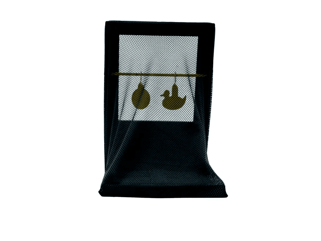 The system combines reactive metal spinners (yellow circle and duck) that swing visibly on impact, with an integrated net pellet catcher that collects 6 mm BBs. This not only adds realism and feedback to your practice but also keeps your training area clean. You can also mount standard 17×17 cm paper targets (such as ASG 20150) for precision scoring.
