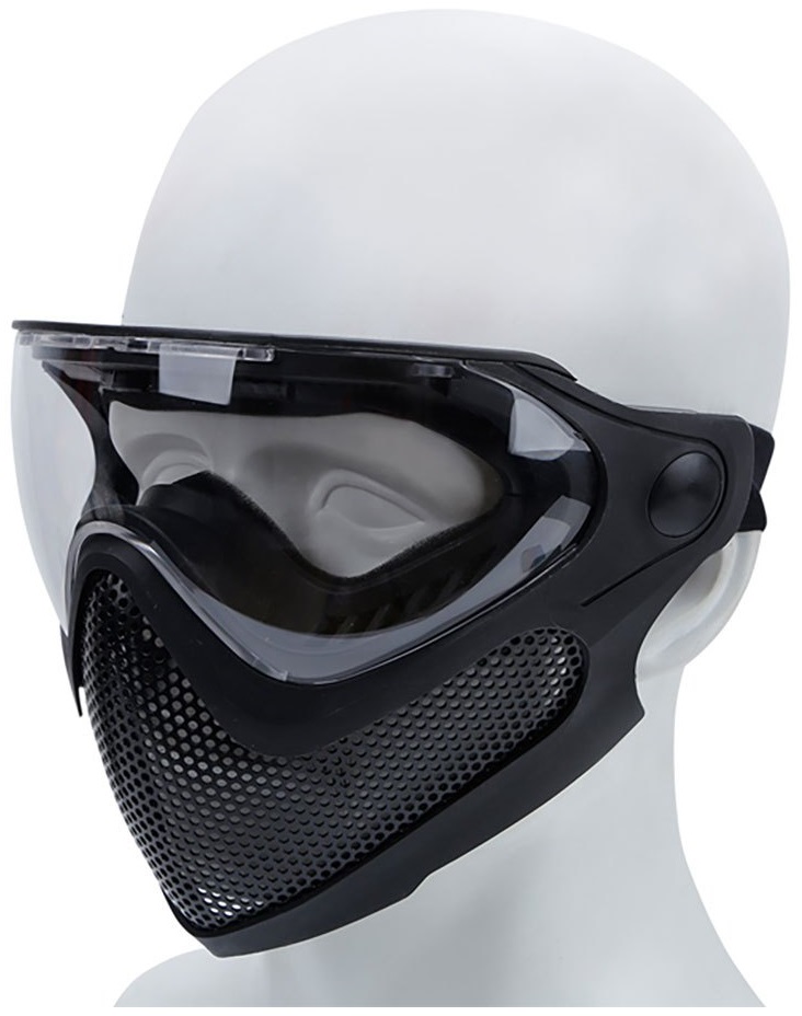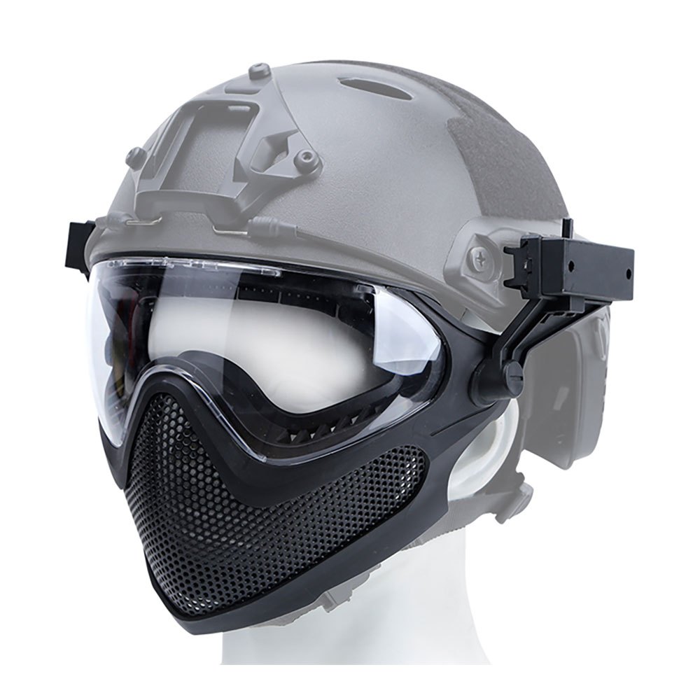 Meshmask for airsoft. Lowprofile, can be used with a helmet.Three lenses are included (clear, smoke and yellow).