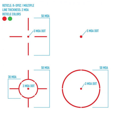 The Sightmark Ultra Shot R-Spec Reflex Sight turns up the heat on your range time with ultra-fast target acquisition and seriously long battery life, from 200 to 2,000 hours on a single CR123A battery. The Ultra Shot R-Spec’s premium wide-angle lens system with scratch resistant and anti-reflective silver coating, 4 illuminated red/green reticle options with 10 brightness settings, parallax correction (beyond 25 yards) and unlimited eye relief deliver a crisp, robust field of view and uncompromising reliability. Built tough, the Ultra Shot R-Spec Reflex Sight is shock proof, IP55 weather-resistant, recoil rated up to .50 BMG and constructed of a rugged, lightweight 6061-T6 aluminum body and protective shield. 1 MOA windage and elevation adjustments, up to 120 MOA of travel, get you on target quickly and keep you there with an Interlock internal locking adjustment system, for precise, repeatable shooting from any range your comfortable shooting at 1x magnification.