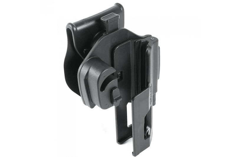 The Battle Style Breakout Holster by Laylax is designed to fit the TM MK23 Pistol. Utilizing a break-open style mechanism, it is compact yet it is able to take the original LAM and suppressor that comes with the TM MK23. This holster is also quiet, making it a prefect holster for those who needs a really quiet sidearm and a holster to go with it.