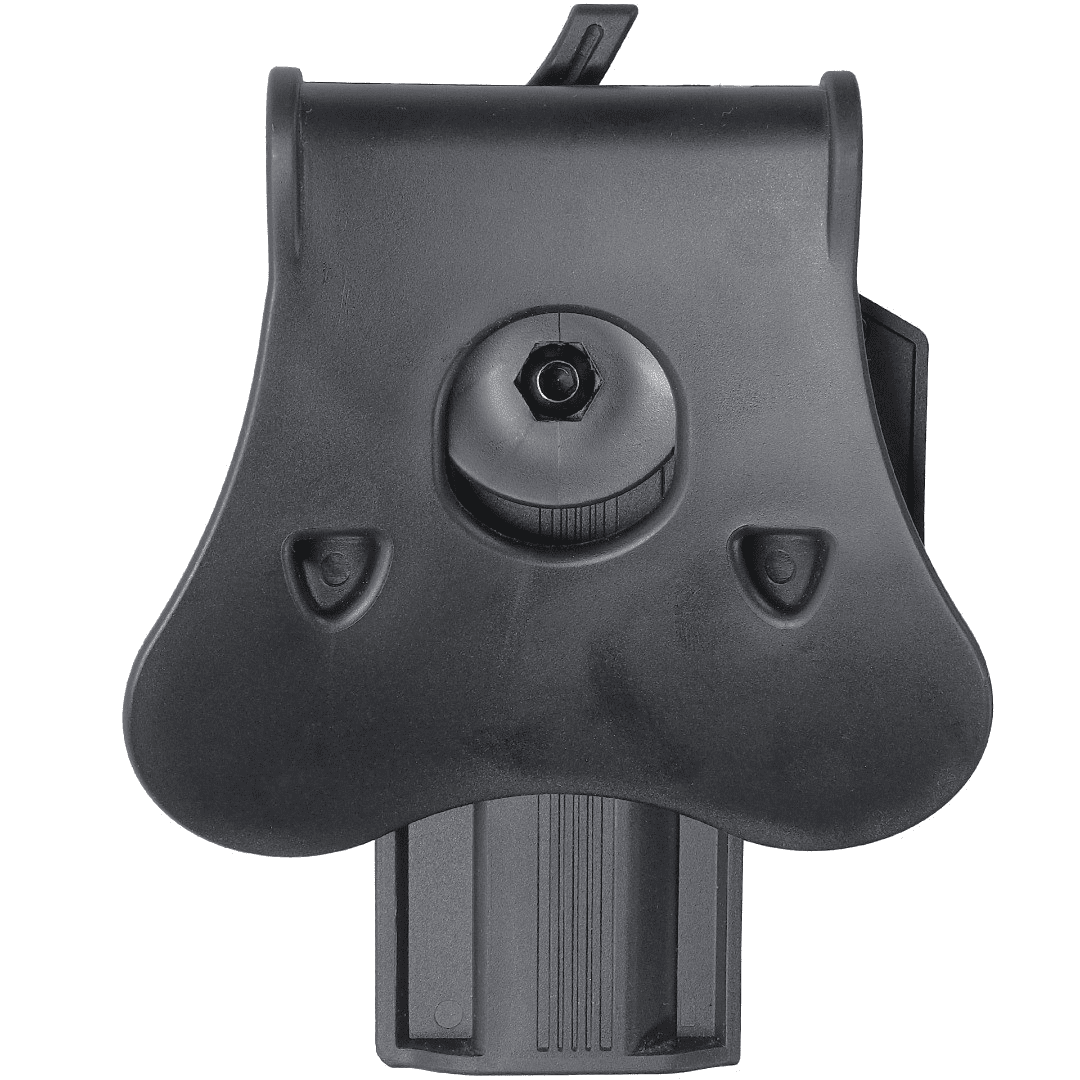 “Quick Draw” Release Lever - This Holster feature a “Quick Draw” Release Lever that is optimally positioned to allow for rapid transitions to & from the trigger – essential for those game-saving moments where your secondary earns its keep. To further aid your draw, the holster is fitted with a 40-Slot, 360° orientation fitting to help you find that perfect draw angle.