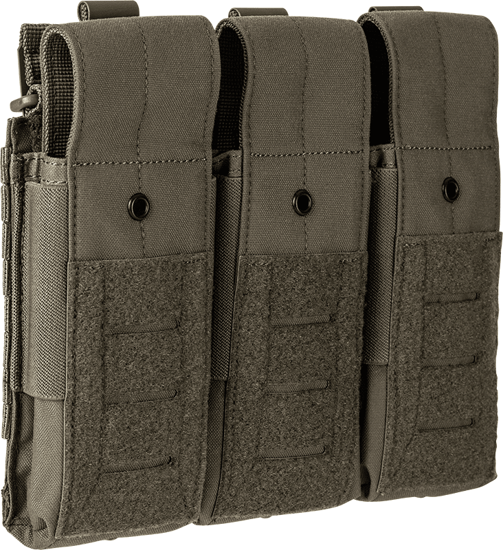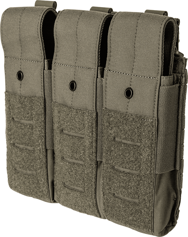 The Flex Triple AR Mag Cover Pouch. Yeah, you heard right. Three mags at the ready when every shot counts. Equipped with Flex-HT™ technology for mounting versatility and easy weaving to all platforms. The waterproof TPU coated straps and the double layer of 500D nylon on the front and bottom add extra durability. Our Pouch Bungee Kit (sold separately) can be added for additional retention options. The fine details have not been forgotten with a drain hole in the bottom panel, Duraflex® G.C. snap, and a 500D nylon webbing cover with a Hypalon® pull tab. The elastic compression sides hold all your mags in place and makes for an easy change when you're empty.