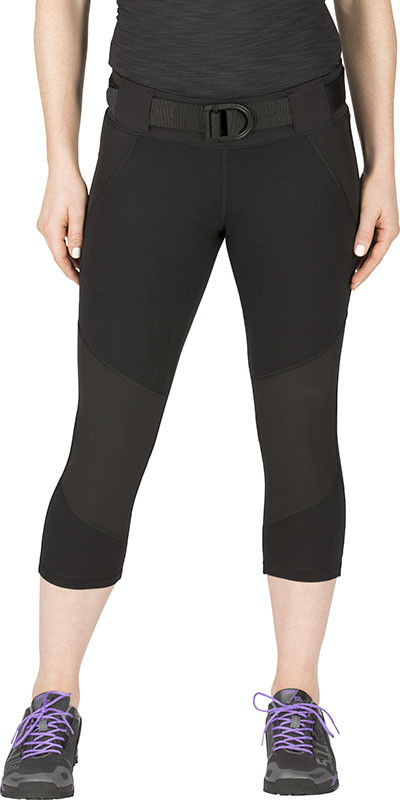 Raven Range Capri är lika bekväm som som traditionella yogabyxor, men har dessutom praktiska bältesöglor, bred linning och paneler i slittåligt material. Det åtsittande materialet och den smickrande modellen ger bra stöd, medan de vävda panelerna på höfterna, baktill i midjan och på knäna ger extra slitstyrka och hållbarhet.
