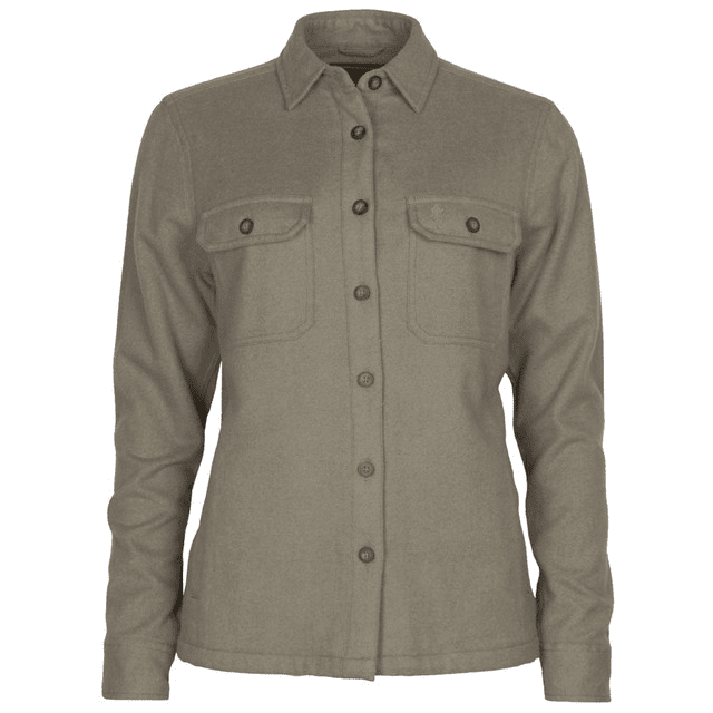 Neat flannel overshirt for her, in stylish mélange look. 100% organic cotton.
