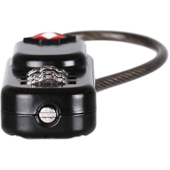 This TSA combination zipper lock uses a durable and flexible cable shackle to help ease it through zip tags. It has a resettable three-digit lock combination and strong zinc-alloy body. It will fit most lockable luggage zips.