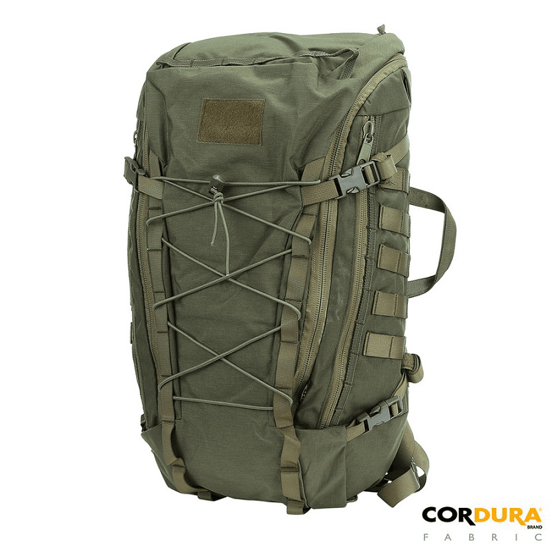 Back pack contractor made of 100% nylon.This backpack has one single zipper so you can open it completely.The inside of the backpack has several velcro panels, so you can attach various accessoires to it.