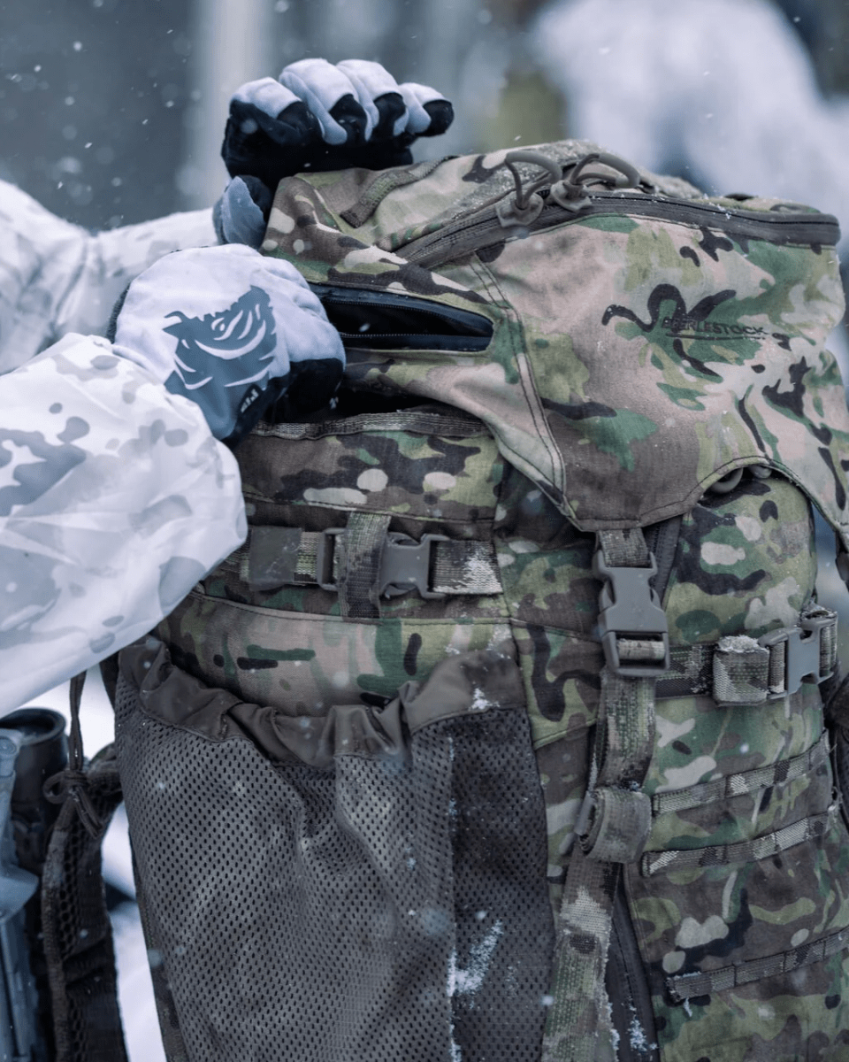 The Battleship™ is an upgraded version of the modern mountaineering style backpack. Both top and front-loading capabilities makes getting to your gear a whole lot easier with a pack of this scale and the diaphragm system can separate the top and bottom compartments. Grapple™ compression straps keep your gear tight to your body and also act as a mounting system for sleeping pads, tents, or even a rifle.
