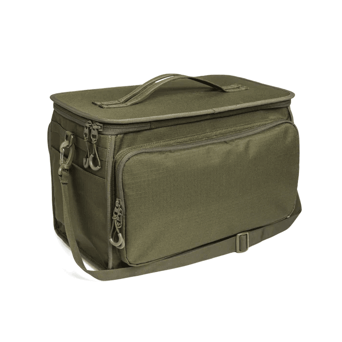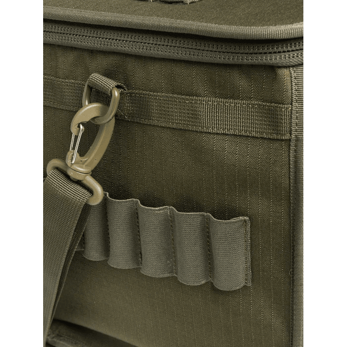 Cartridge bag holding up to 10 boxes x 25 cartridges with 3 outside pockets for chokes, caps and other accessories.