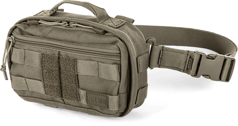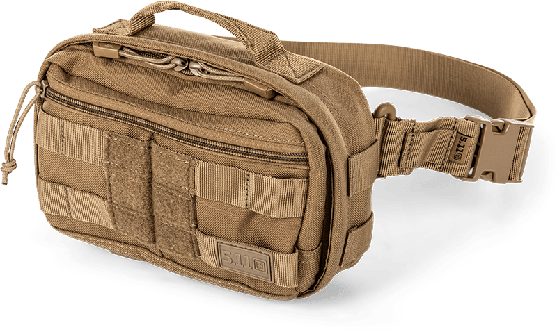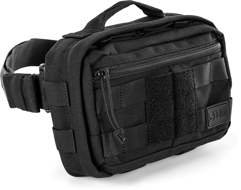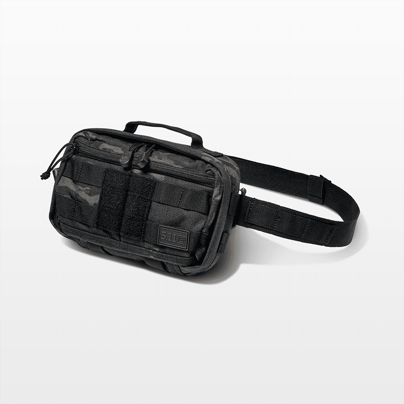 Carry and conceal everyday essentials with the 5.11 RUSH® MOAB™ 3 4L bag. The MOAB 3 integrates with other RUSH® bags using the 5.11® Tier System, and works independently as a crossbody or waist pack. It includes a 1.5" waist strap with a quick-release buckle with four connection points ensuring a comfortable fit in either configuration. External web MOLLE on front and side panels and elastic bands on the bottom panel allow for customization and accessory attachment. Inside the zippered main compartment, we added CCW compatibility with an internal TacTec® loop panel and trigger guard loops in addition to elastic bands for extra org. A top grab handle maximizes carrying options while an external front zippered pocket holds those extras. Whether you need an everyday carrying solution or a modular add-on, the RUSH® MOAB™ 3 is the right-sized option.