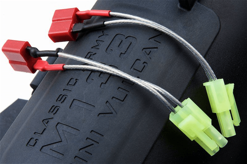 The Classic Army M133 Mini Vulcan is powered by two powerful electric motors (via 2x 11.1V LiPo batteries).