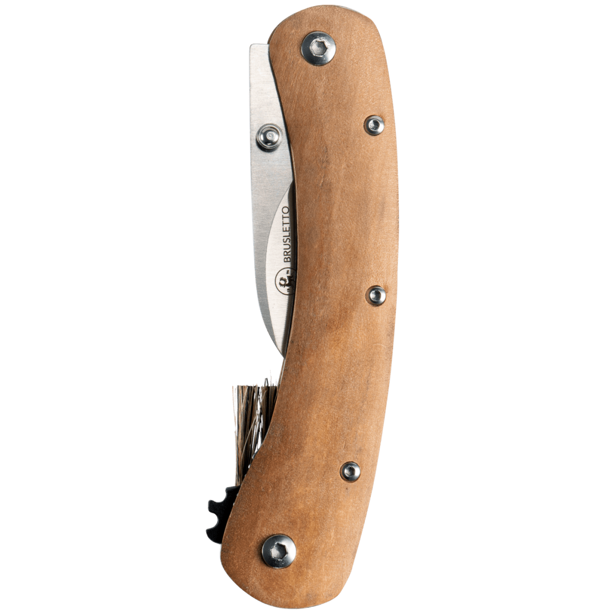 Both the blade and the brush can be folded into the handle, protecting them during transport. An integrated liner lock ensures the blade stays securely in place, both when open and when closed. This prevents the knife from folding accidentally during use—or from opening in your pocket.