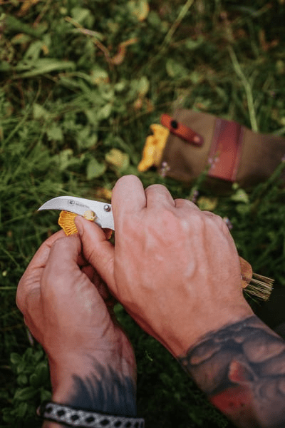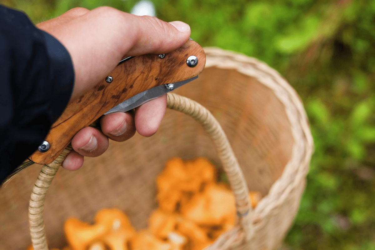 The knife features a rounded tip that makes it easier to cut mushrooms close to the base, while avoiding damage to the mycelium—the underground fungal network that ensures new mushrooms can grow again in the same spot.