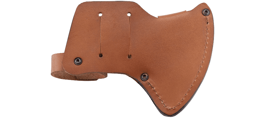 The leather on this sheath is full-grained leather that is heavy duty and hand crafted in Oregon, USA. The leather is vegetable tanned and will not corrode metal. It has a hand oiled finish for durability and the seams are locked stitched with heavy weight nylon thread. The sheath protects the axe head and fits snugly and securely with two snaps. The belt loop fits belts with widths up to 44,5mm. This sheath only fits the Cimbri™ Axe .