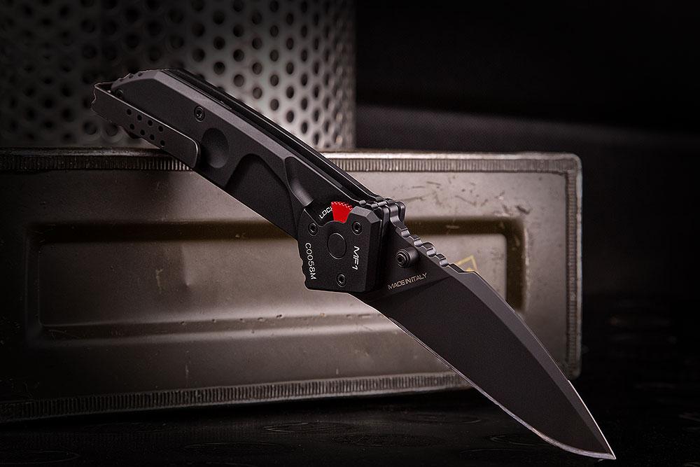 The BC (Belt Cutter) version of the MF series includes a rear belt cutter with an easily replaceable industrial cutter blade. Additionally, a cutting screwdriver is inserted inside the cheek, allowing for the adjustment and calibration of firearm optics.