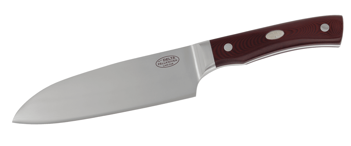 Delta, our second largest kitchen knife is also a very allround kitchen knife. Unlike CMT Alpha, the Delta has a straighter blade shape and is not as pointy at the blade tip. Therefore very suitable for chopping and slicing vegetables very thin and slicing meat.