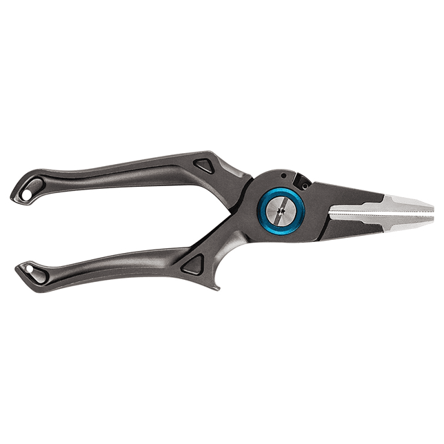 The pliers are a hot-forged aluminum construction, allowing the metal to be manipulated into the ergonomic design as well as give the pliers unrivaled strength. The spring-loaded pliers lessen hand fatigue and are held in check by a plunge lock – meaning the tool won’t open unexpectedly when you’re on the move or catching fish. The nylon sheath includes a belt loop, d-ring, and coiled plier lanyard and can be tethered from multiple points.