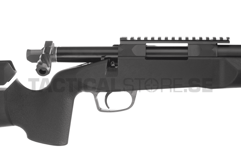 The sniper comes with a reinforced 90º trigger. Reinforced cylinder head cylinder and piston so that with a spring m140 "very soft locked" you can get 2.8j with 0.45 "550 fps" making it out of the box you can enjoy it to play.