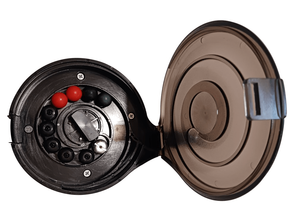 - Industry-first adjustable spring tension: Dial spring tension up or down to reliably feed brittle tournament paint or heavier solid rounds without swapping springs. This removes a major limitation of previous drum designs