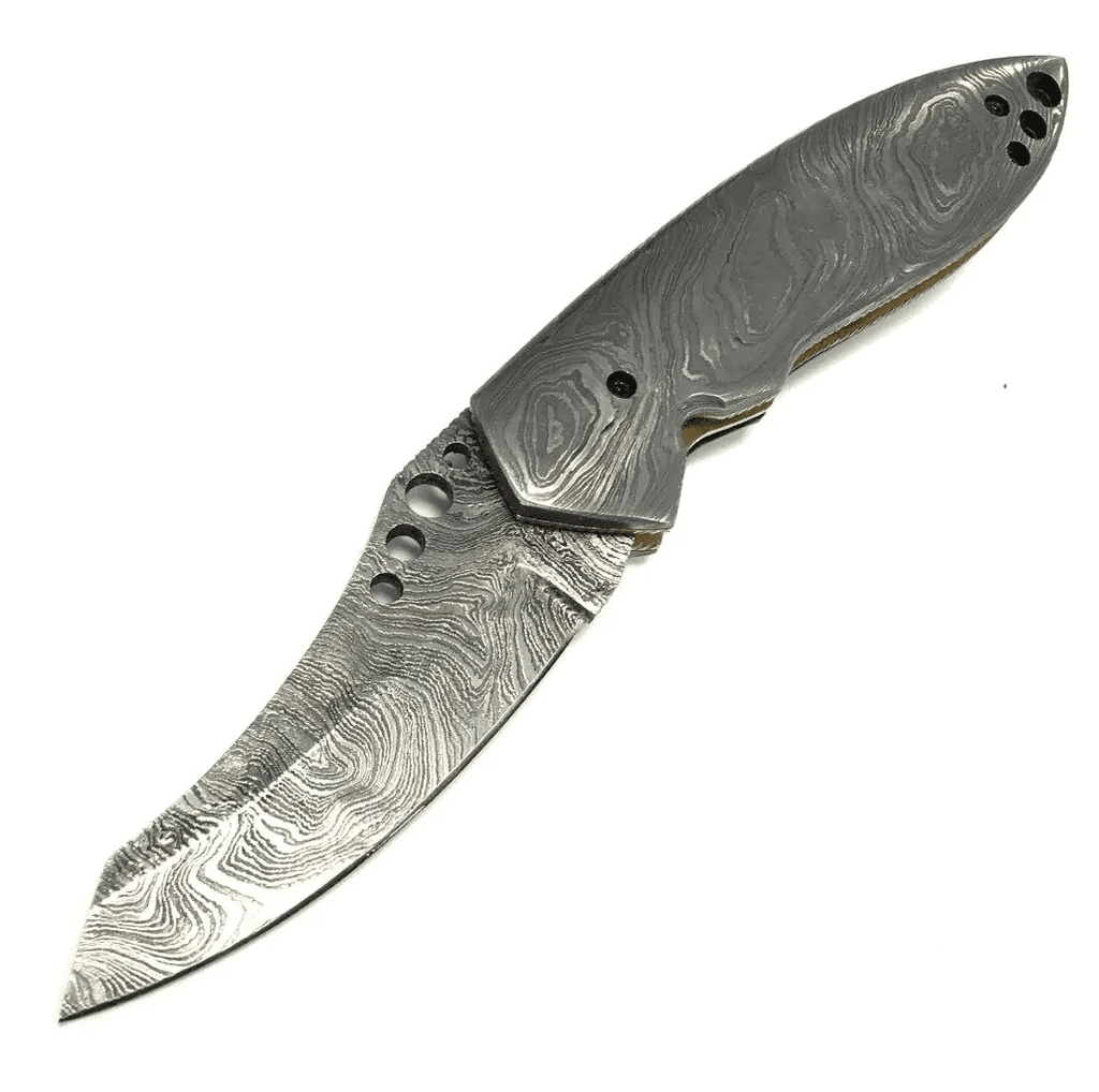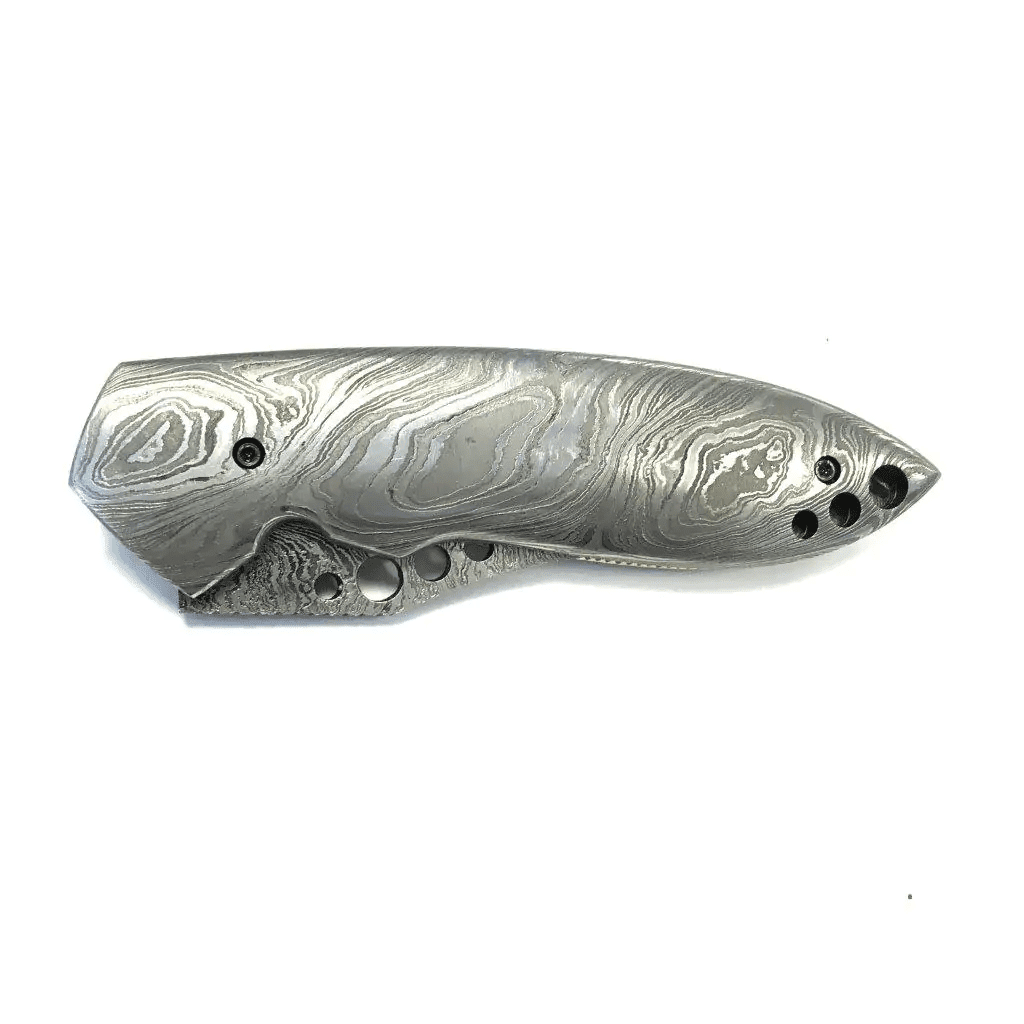 Beautiful solid heavy folding knife with damascus blade and sides.