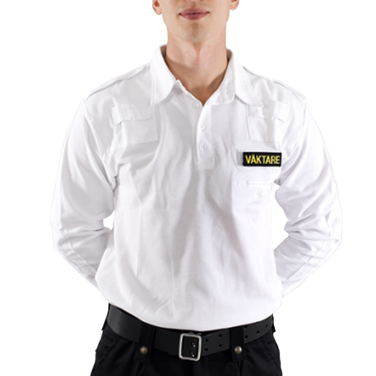 Långärmad pikétröja i modell hundförare med skjortkrage, bröstficka, axelklaffar, monofonhållare. Tröjan är förstärkt över axlar och armbågar. Tillverkad i 100 % bomull.