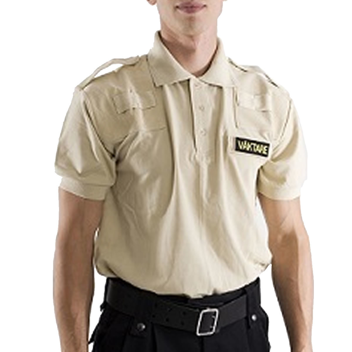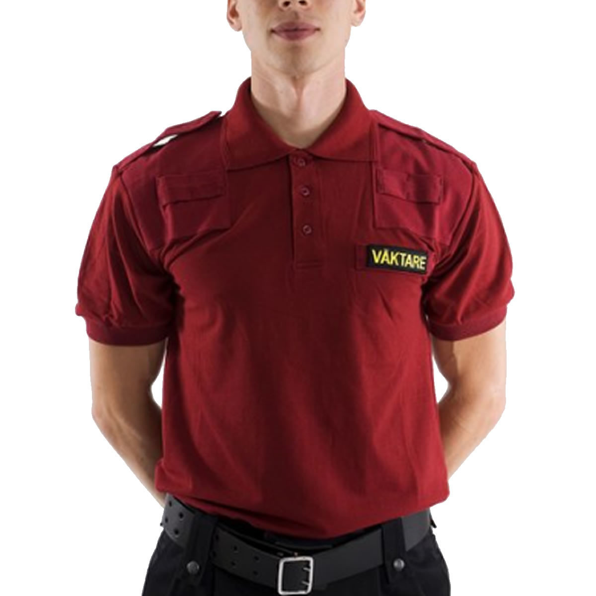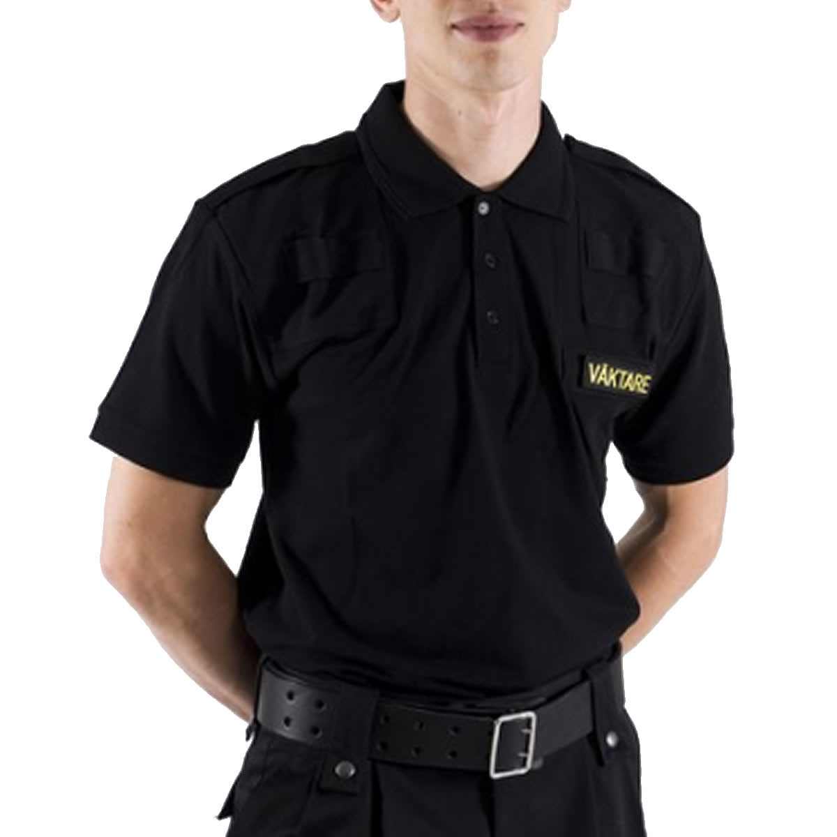 Kortärmad pikétröja i modell väktare med tenniskrage, axelklaffar, monofonhållare. Tröjan är förstärkt över axlar.