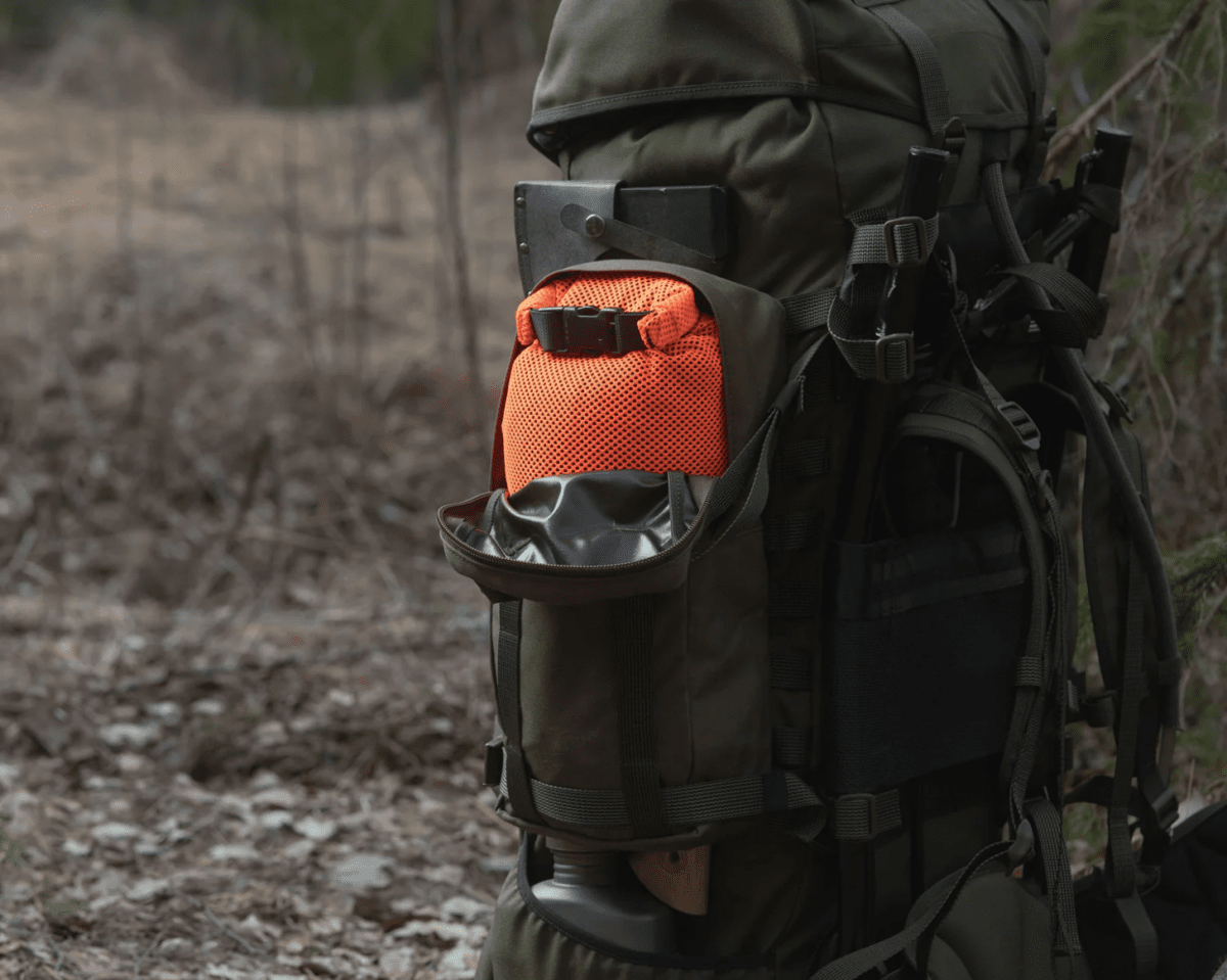 Stowing wet gear—mesh allows contents to air dry