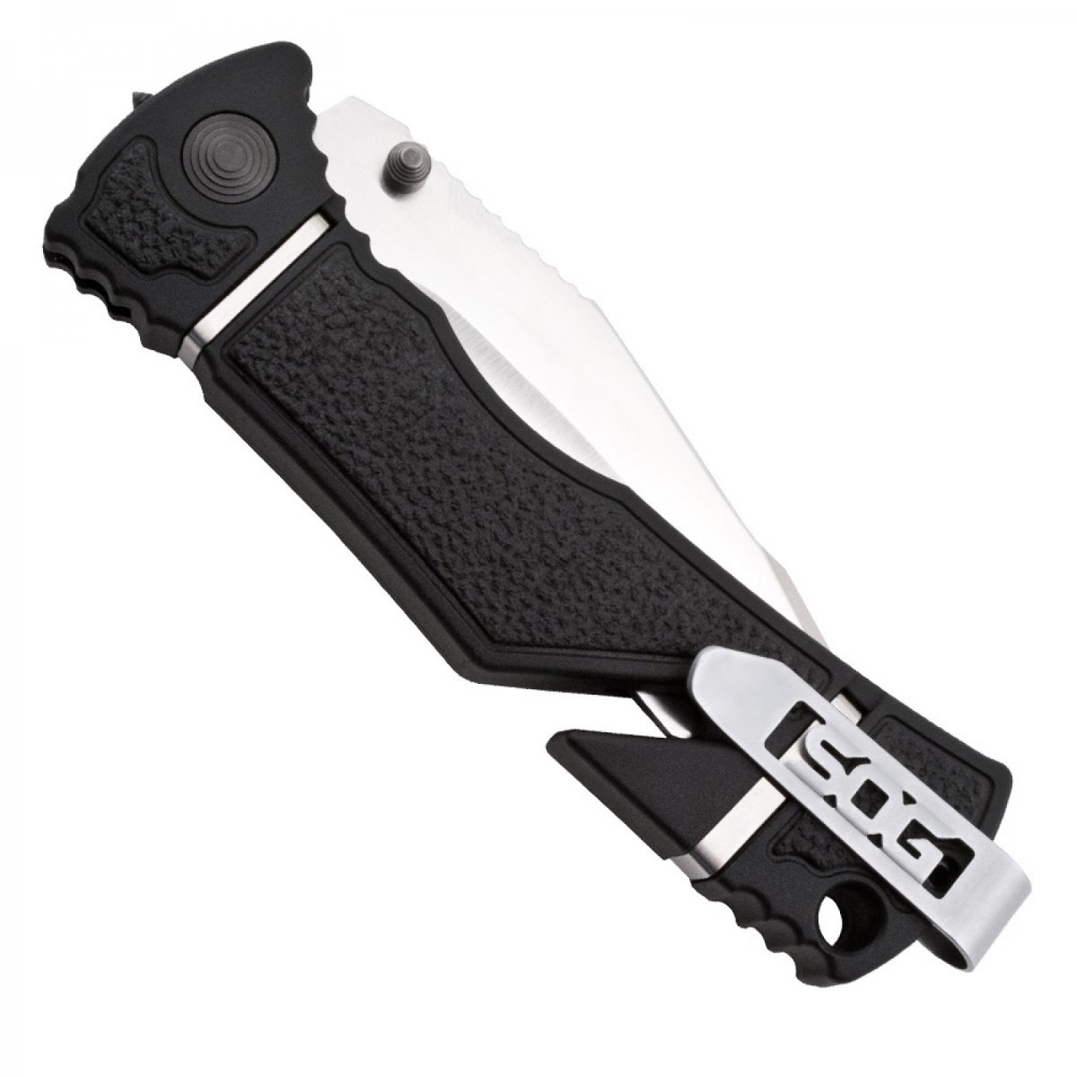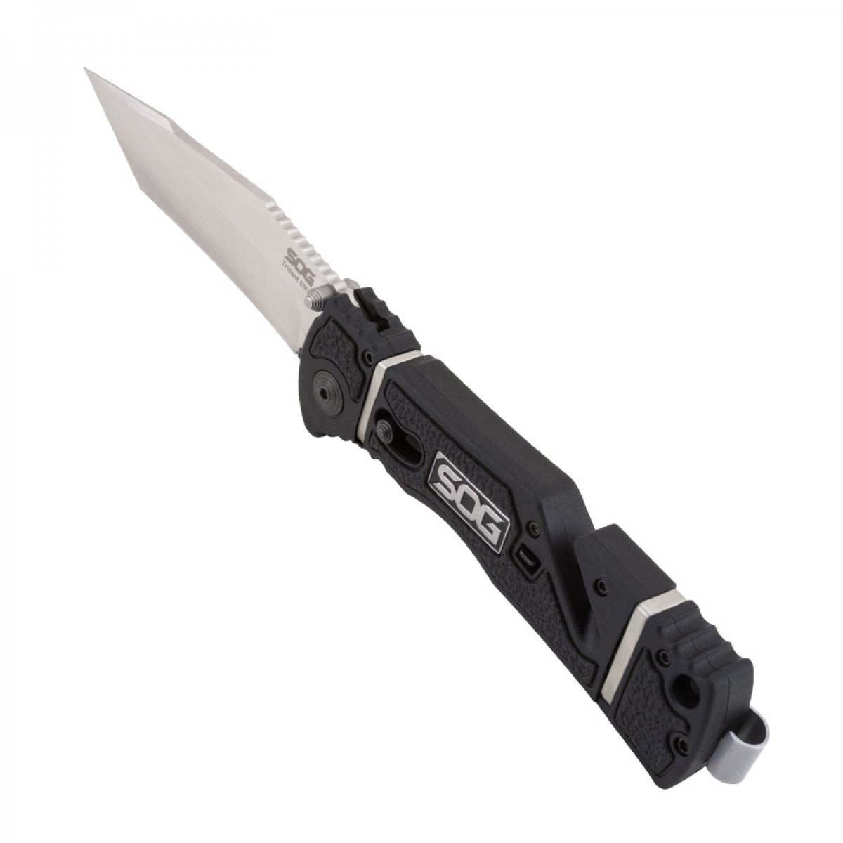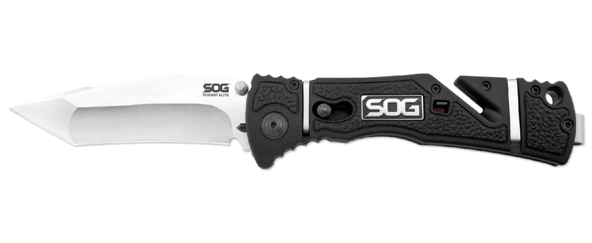 The Trident Elite features SOG’s patented Assisted Technology for quick one-handed opening. The slot cutter built into the handle can cut thin rope, belts, or webbing without opening the blade. The front of the handle has a built-in glass breaker for any situation. The Trident Elite comes with a 3.7-inch blade made of reliable AUS-8 stainless steel and a durable glass-reinforced nylon handle with textured rubber inserts to improve grip.