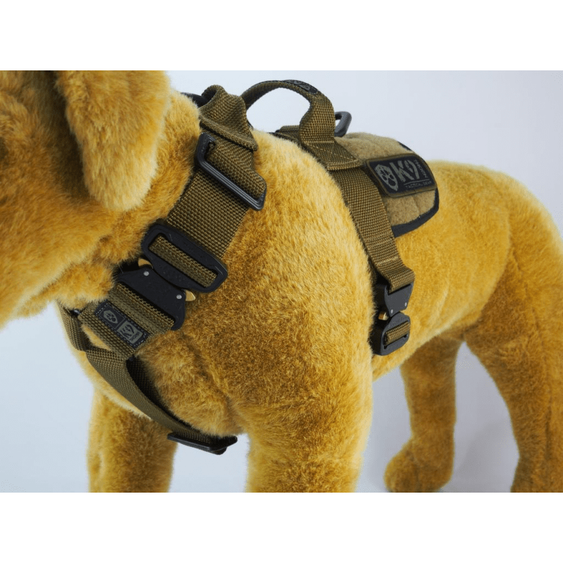 Mycket stark och mångsidig sele för tjänstehund med en design som gör att den kan anpassas till hundens storlek för en exakt passform. D-ringen som håller ihop bröstbanden ger mycket hög rörlighet. Tillverkad med material och hårdvara av högsta kvalitet.