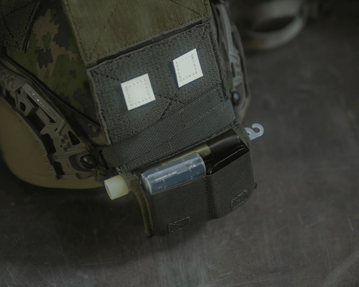 A larger counterweight pouch for Finnish Senop lead weights and 10 x 10 cm identifier patches. Designed to work with the common Ops Core FAST XP high cut helmet and our High cut helmet cover V1.