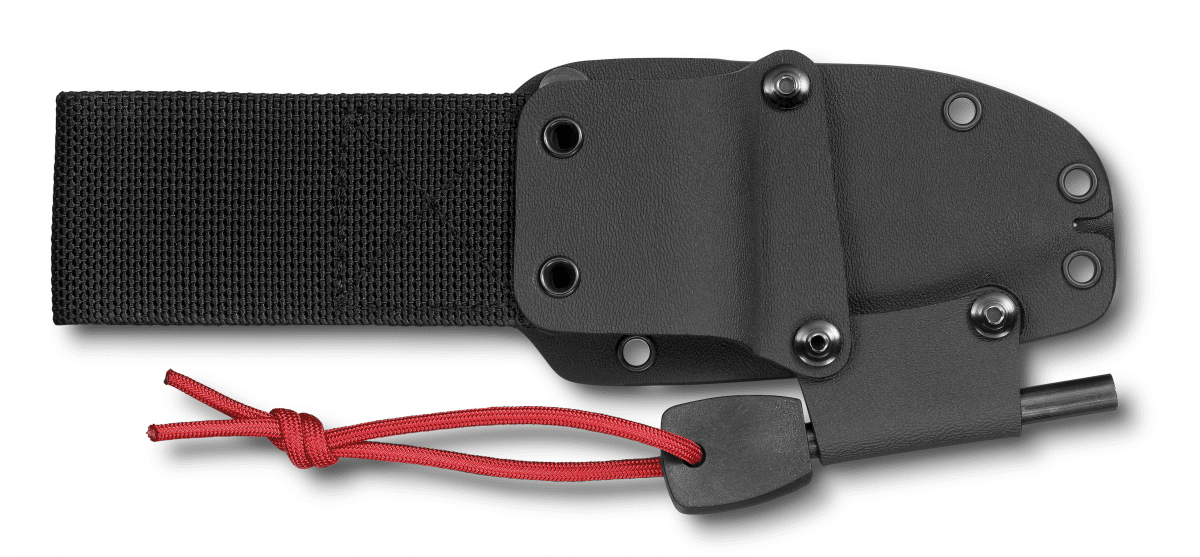 - Full tang knife with slightly sharp back blade to ignite the fire starter