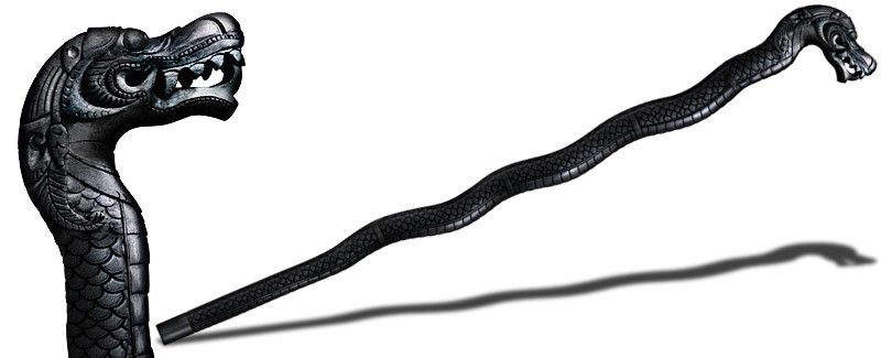 Legends aside, a dragon is a powerful creature possessed of extraordinary physical attributes, which command respect across the board. It is for this reason we have chosen to use the dragon as the inspiration for our latest walking stick. It is modeled after an intricately carved Dragon Stick from our President, Lynn C. Thompson's collection and is reproduced using expensive, hand engraved injection molds. The detailing is astonishing, with scales running the full length of the undulating shaft, and a fearsome face with snarling fangs, it is an imposing stick you'll be proud to be seen with on almost any occasion.
