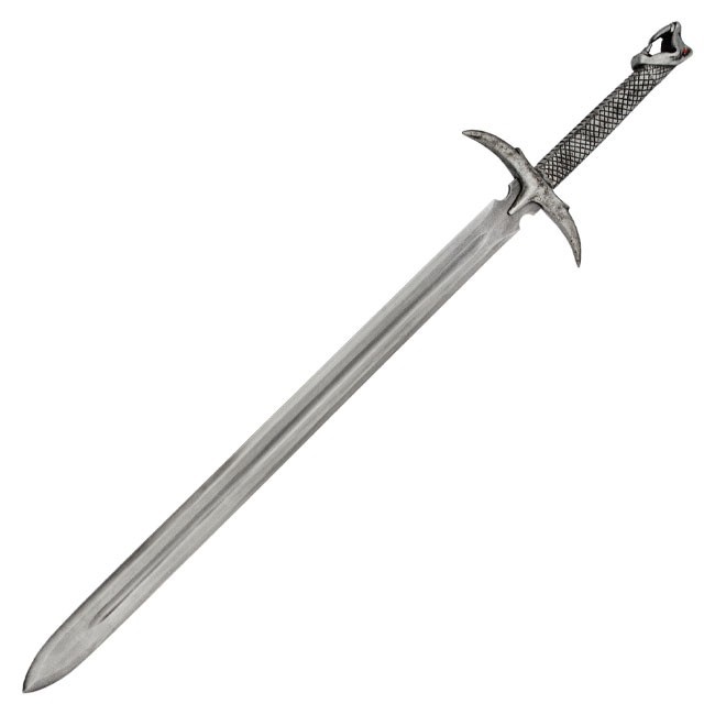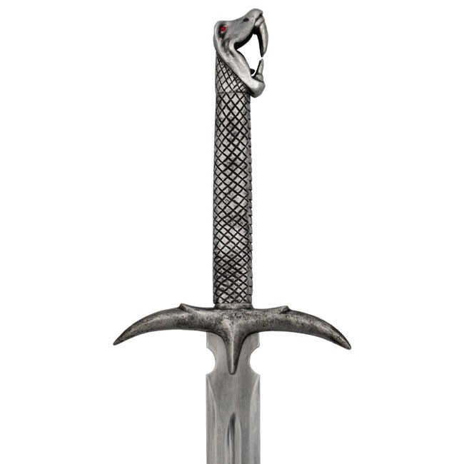 This sinister and powerful sword has the snake's head pommel with faux ruby jeweled eyes and serpent scale grip, giving this blade a truly venomous design. A tempered, high carbon steel blade provides the bite to this sword, allowing it to back up its fierce appearance.