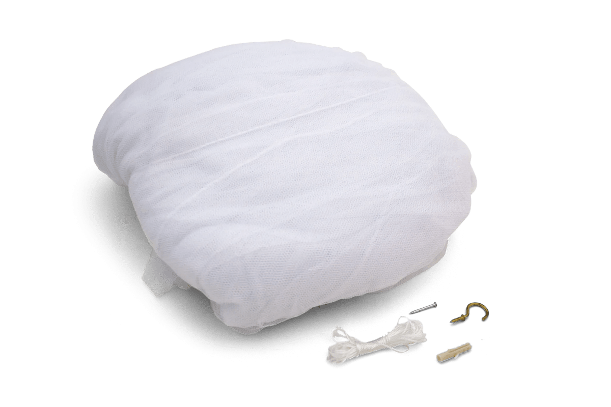 Coghlan's Travelers Mosquito Net provides all-around protection from insects with its circular shape and fine, washable polyester mesh. Its spring steel frame ensures easy setup, while its lightweight design makes it perfect for travel. The net includes a carry bag, 1 hook, 1 anchor, 1 nail, and 152" (3.8 m) of twine. With a height of 98" (2.5 m) and a diameter of 157 (3.98 m), it offers ample space for relaxation.