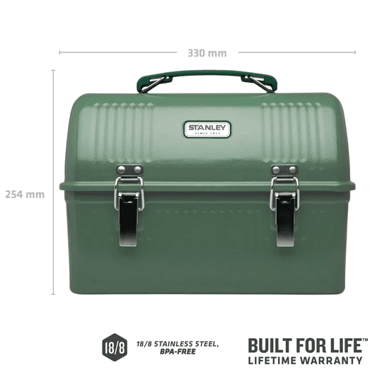 As far as vintage lunch boxes go, this one’s a real classic. Timeless design. Durable construction. And enough room to hold all your food (lunch, snack, second snack and more). There’s even a metal bracket just inside the lid that can keep your full-size Stanley Vacuum Bottle (up to 0.75L) or Stanley Travel Mug secure.