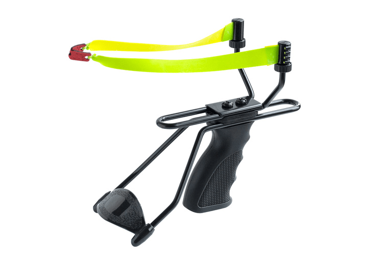 Powerful slingshot with high output speed. Adjustable armrest for good precision.
