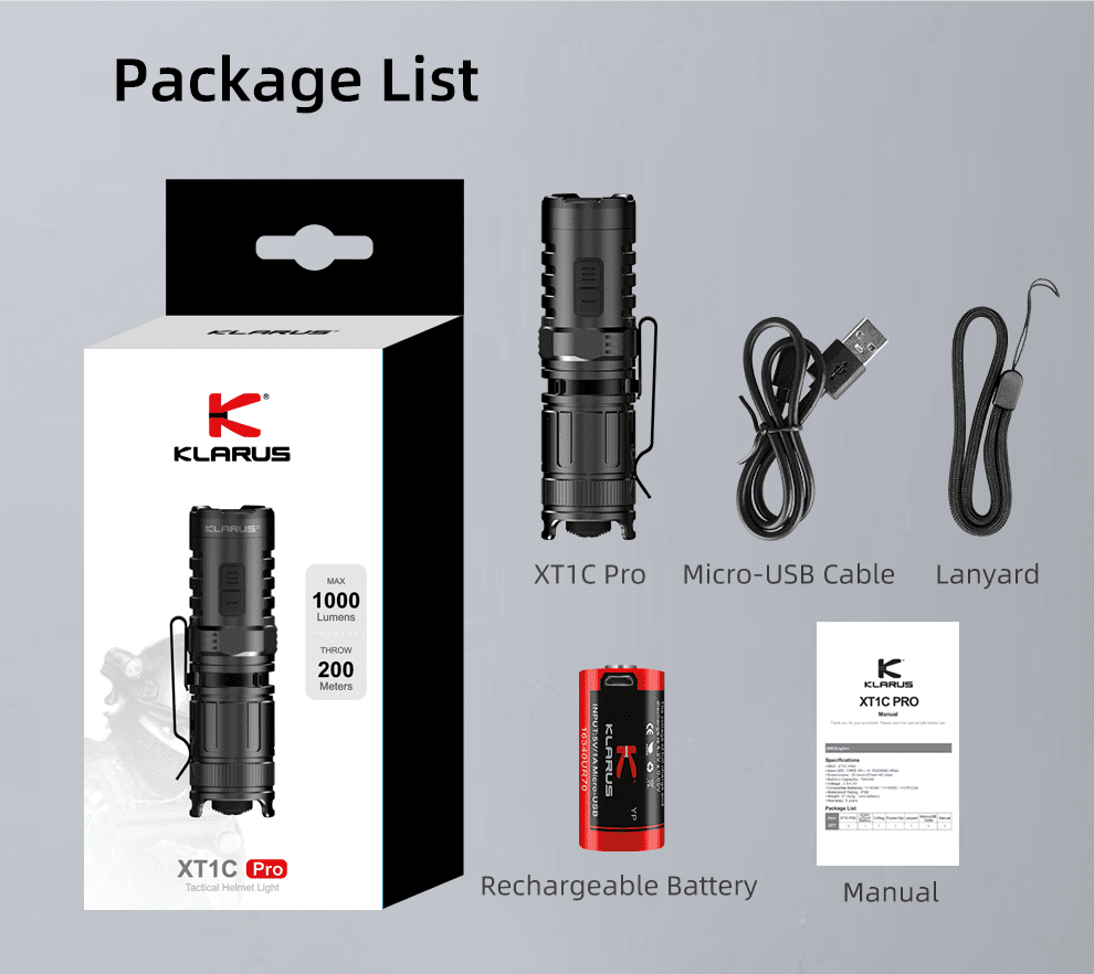 KLARUS XT1C Pro 1000 Lumens Tactical Helmet Lamp.