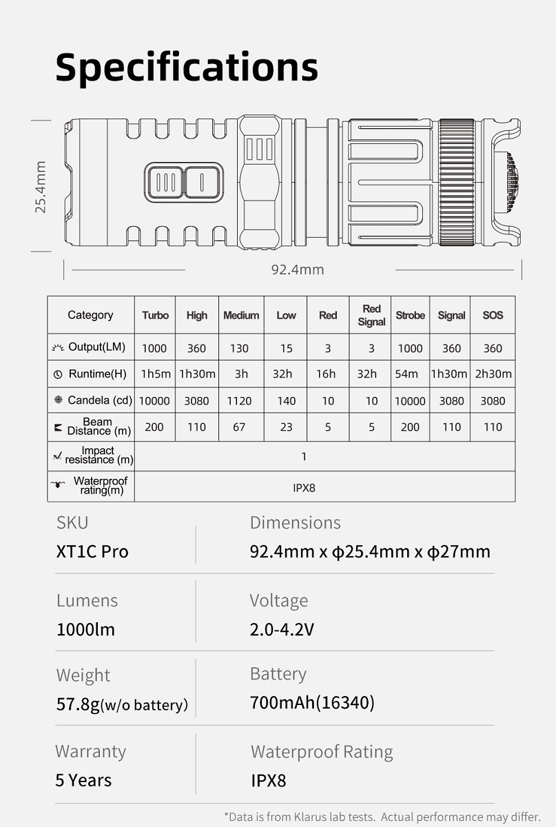 9 Output modes for All Scenarios - 4 white light modes +2 red light modes+3 signal modes,no matter what the situation calls for, whether it's hiking, camping, security patrol, or law enforcement, the XT1C Pro has it all.