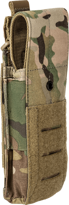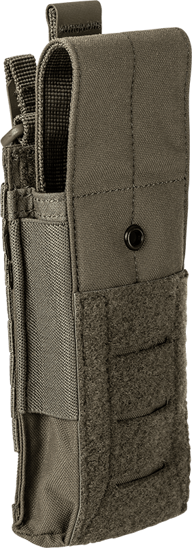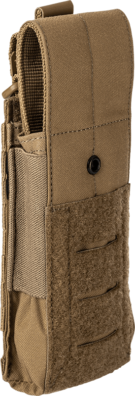 Lightweight, tough, and always has your back. The Flex Single AR Mag Cover Pouch has Flex-HT™ ½” stacked webbing on the back for mounting versatility. Flex-HT™ ¾” TPU coated straps are more durable, waterproof, and make it easy to weave to any platform. Speaking of durability, this pouch has a double layer of 500D nylon and webbing on the front and bottom and a Duraflex® G.C. snap. Our Pouch Bungee Kit (sold separately) can be added for additional retention options. The sides are designed with elastic compression and the webbing cover has a Hypalon® pull tab for a secure hold and easy draw.