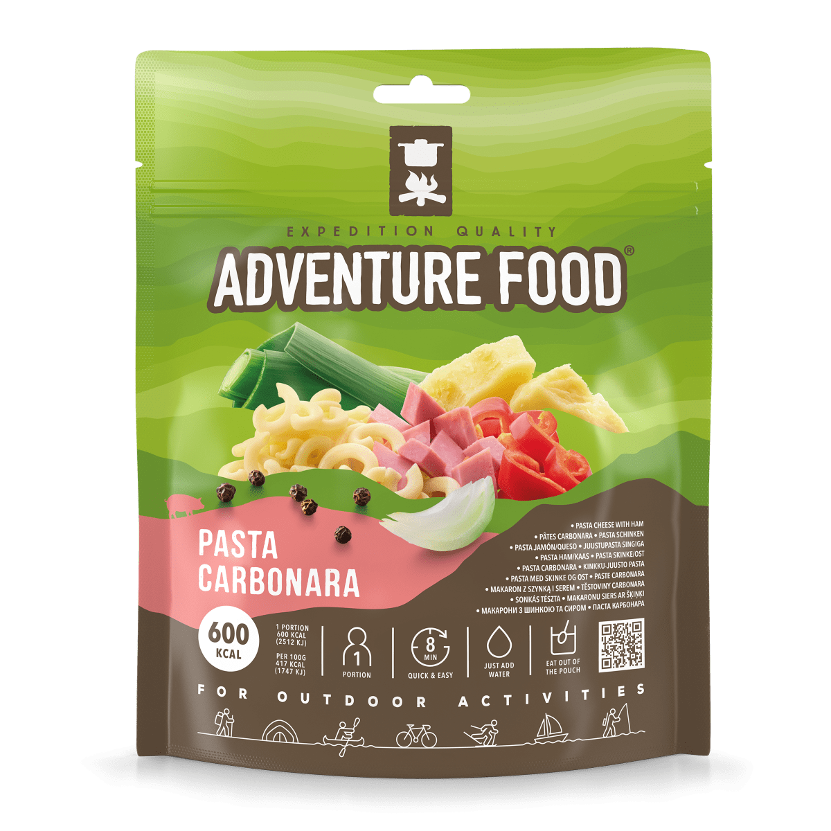 | Ingredients | 57% pasta (wheat, egg, salt), 11% cheese powder (cheese, salt), 7% ham (pork, wheat starch, salt, acidulant (rosemary extract, citric acid), smoke extract, preservative (E250)), milk powder, sunflower oil, potato starch, bell pepper (4%), onion (3%), leek (1%), glucose syrup, salt, pepper (0.07%) |