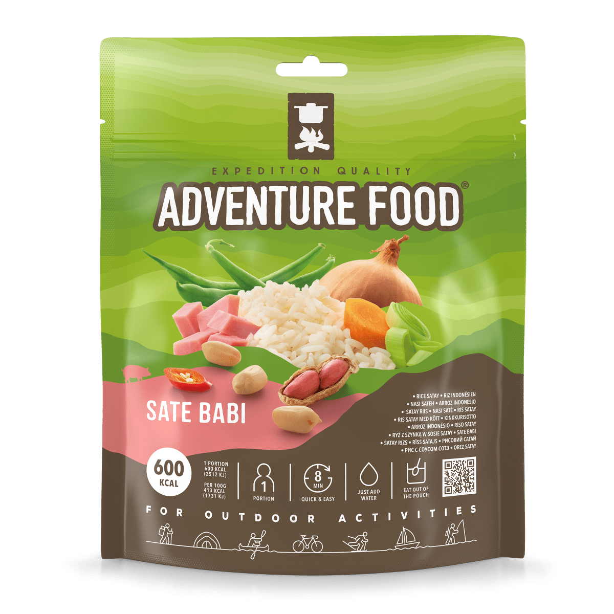 | Ingredients | rice (50%), 29% satay sauce (peanuts (40%), wheat meal, whey powder, sugar, onion (5%), salt, soya, yeast extract, lemongrass, garlic, chilli pepper, maltodextrin, cumin, aroma, tomato, bell pepper, ginger powder, Thai ginger, sunflower oil), 6% ham (pork, wheat starch, salt, acidulant (rosemary extract, citric acid), smoke extract, preservative (E250)), sunflower oil, carrot (3%), green beans (3%), onion (2%), sugar, glucose syrup, salt, leek (0.65%), milk powder, ginger powder, hydrolyzed protein (maize, rapeseed), cayenne (0.03%), pepper |