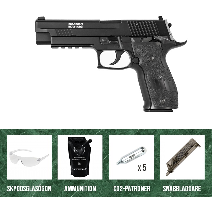 Licenstillverkad modell av Sig Sauers välkända P226 i X-Five utförande. Tillverkad helt i metall med greppsidor i plast för realistisk känsla med semiautomatisk avfyrning och riktig "Blowback". En välbalanserad pistol med räls på undersidan för montering av tillbehör samt vitt främre och svart bakre sikte för snabb insiktning på målet.