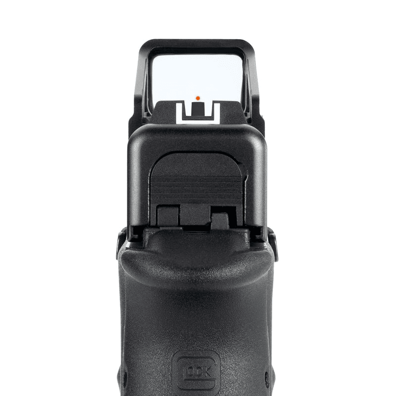 Classic red dot sights with a mounting plate usually cover the mechanical sights and can be tricky to use. Thanks to the Glock Modular Optic System (MOS, up to gen. 5), the new NOBLEX 1x23 OS sight is almost completely integrated into the slide of the Glock pistol and thus offers simultaneous use of the standard sight and the red dot (Co-Witness).