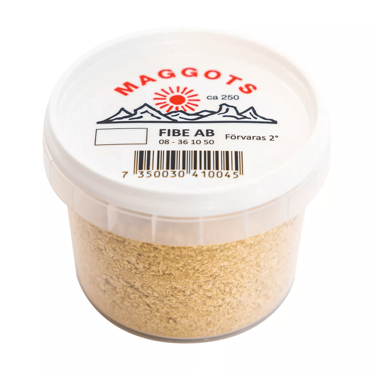 | Övrigt | Eftersom vi inte kan garantera att maggoten håller sig fräsch under transport behöver vi informera om detta. Produkten har normalt en hållbarhet på cirka 3 veckor vid förvaring i 1–2 °C, men under frakt kan hållbarheten bli betydligt kortare, särskilt sommartid. Observera att beställningar som läggs sent i veckan kan bli liggande på fraktbolagets terminal över helgen. För bästa resultat, lägg gärna din beställning i början av veckan. Notera även att vi inte kan erbjuda öppet köp eller bytesrätt på denna produkt. |