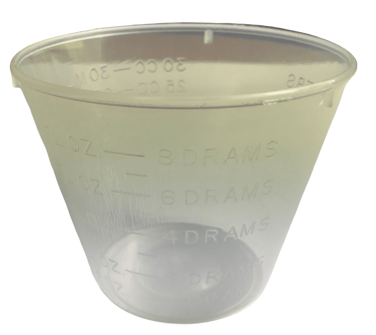 Clear 1oz. plastic cups make a handy accessory to Flex Coat finish and epoxy glue.