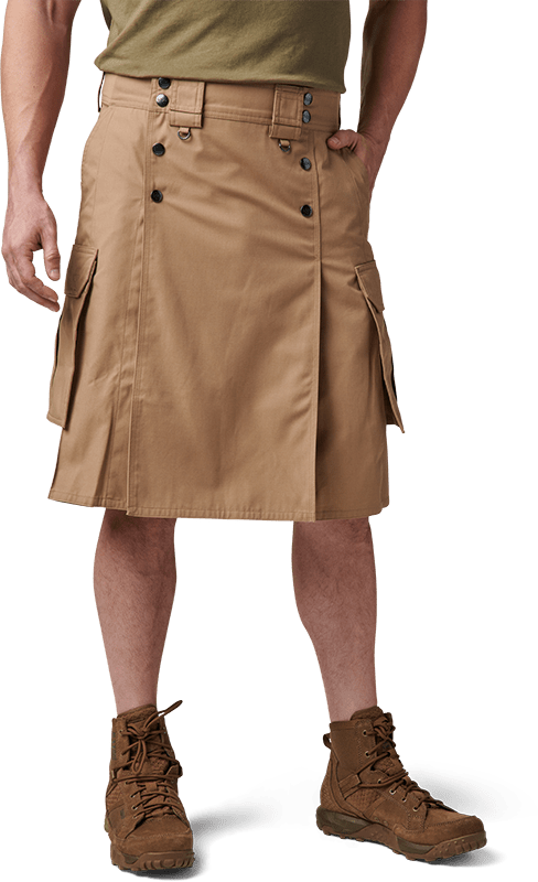 Oavsett om du väljer att bära Commando Kilt på ett traditionellt sätt eller med något mer än stövlar under, ger Commando en unik möjlighet till fullständig rörelsefrihet och andningsförmåga. Traditionell kiltstyling med löstagbara cargo fickor.
