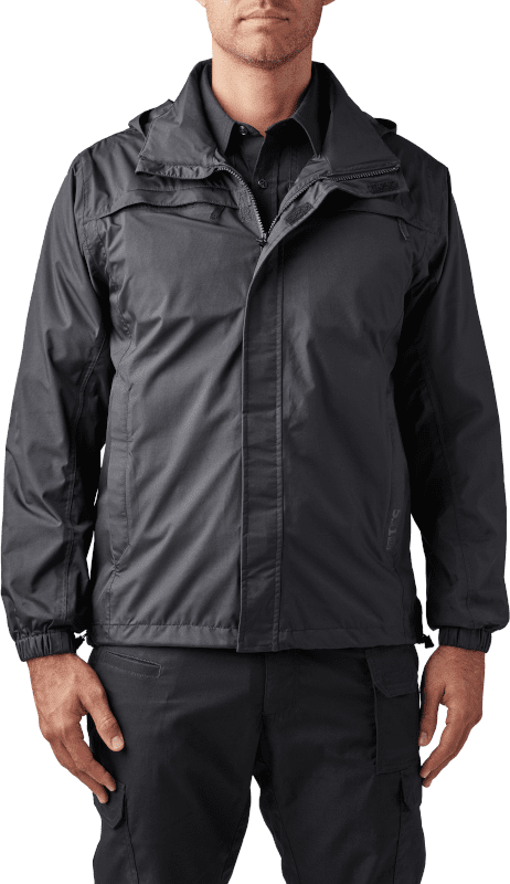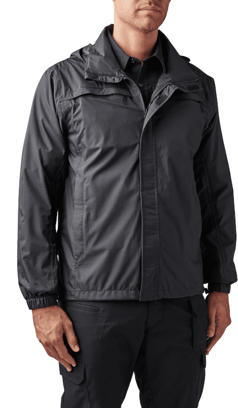 Wet weather won’t slow you down if you’re wearing the lightweight Tac-Dry Rain Shell 2.0. We took our original Tac Dry Rainshell and beefed up the performance with an even tougher 20K waterproof and 10K breathable 2L ripstop with DWR finish. Completely seam-sealed, the Tac-Dry Rain Shell 2.0 combines a new stationary hood, updated elastic sleeve cuffs, protective storm flap and an inner chin guard to keep wind and water at bay. When the skies clear, easily roll the brimmed hood back into the collar. The mesh lining serves double duty by providing added protection and all-day comfort. Both sides of the chest and the back feature pull-out ID panels. Carry your notepad, phone and other patrol necessities in the external zippered pockets and internal chest pocket. The patented 5.11® Quixip® release system on the sides allows quick access to your duty belt, while the internal shock cord keeps your rain gear in place.